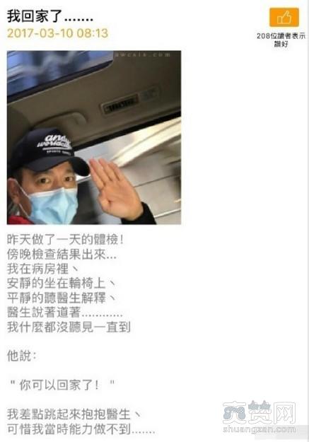 他还写道:“感谢多有媒体朋友在这一段时间让我有足够的空间休养,媒体对我的支持,我是看到、感到的。家的留言我每天都看一遍,每一个祝福。每一声叮嘱,都是我的灵丹妙药。相信我,我很快就可以自己站起来!”
