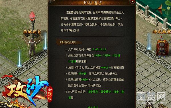 2、炼狱迷宫活动限时25分钟,结束后玩家将被自动传送出去,玩家要在短短25分钟内挖取尽量多的宝藏。