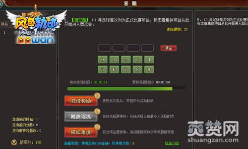 在智力答题的过程中,临场反应非常重要,因为每题答题时间仅仅为15秒,无阅题时间,作答之后答题面板就会公告结果。在ppwan《风色轨迹》中,答题采用积分制,答题速度越快积分就会越高,不作答即为0分,打错为1分。因此,遇到不会答的题目可不能不做答哦!