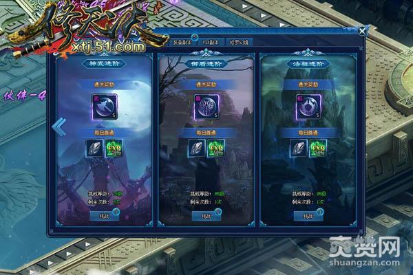 51《修天决》玩家达到85级并开启御盾玩法后即可挑战御盾进阶副本。玩家每天免费获得一次挑战副本的机会,之后每次进入挑战需要消耗数量不同的钻石哦!进入副本后,玩家只需按照顺序击杀副本的怪物即可通关,击杀怪物有机会获得各类御盾进阶道具奖励哦!