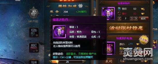说说升级所需的关键材料“仙宠进阶丹”。想要从一阶升级到二阶,没有上百颗进阶丹是无法完成的。傲天乾坤战纪中想要收获更多的进阶丹,“进阶副本”和“日常活动”都是你无法忽视的场景。当然,如果您是土豪请移步右侧,仙宠8折礼包已经恭候您的大驾多时。原价240元宝,现在仅需192元宝,首先声明小编可不是传说中的托喔。想尽千方百计,收获进阶丹,你必须要重视!