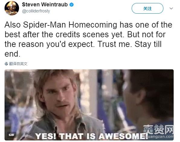 @Steven Weintraub:大爱《蜘蛛侠:英雄归来》!惊喜不断!笑料百出!票房肯定爆炸!彩蛋很棒!一定要看到最后!高中生蜘蛛侠这个设定太聪明了!