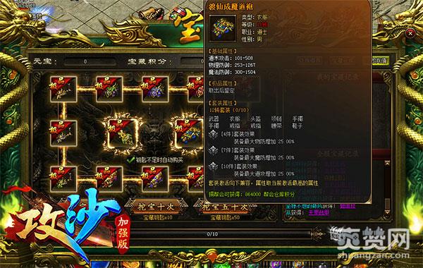 2、玩家在宝藏中挖宝,将有机会得到至强11转道士神装武器和衣服,还有各种14转配饰,相当给力。