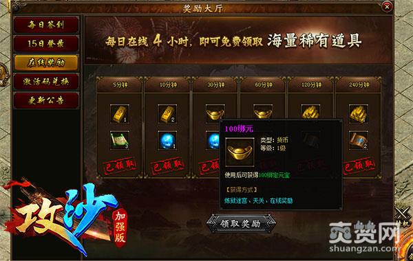 1、在游戏中,玩家只要在线游戏,累计在线时间,便可领取各种资源奖励;
