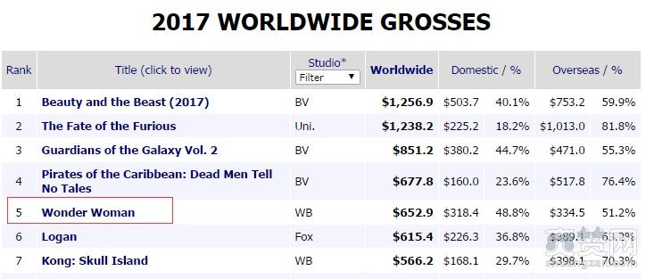 《神奇女侠》北美票房已经突破3亿美元,海外总计3.345亿美元,全球成绩6.53亿美元(约合人民币44.67亿元),超过《金刚狼3》跻身全球票房年榜前五,同时也是北美本土今年第三部破3亿美元的电影,势不可挡。