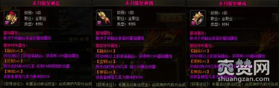 那么龙皇神盔、神镯、神戒?比起神兵、神甲而言属性相对要弱一些,但是融合的要求反而更高,可以与8转以上的装备融合,同样获得130%的基础属性。只是攻击时有10%几率反射5%收到的伤害,减少2%暴击伤害,减少目标1%的防御。