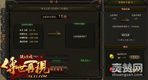 对于51《铁血皇城》的老玩家来说,转生并不是一个陌生的玩法,但是每每说到转生,却是让众多玩家面露为难之色,虽说转生之后可以带来大量的属性加成,但是好不容易拼命转到12转,如今又开放15转,真是要挂机挂到地老天荒啊!别急啊,虽说人物等级达到100级后可以通过降低自己的等级来兑换转生修为,可是每天只能兑换3次,也是醉醉的;要是你和小编一样心急倒是有一个方法可以省事儿不少,通过商城购买转生丹只要双击一下,那经验就如坐了火箭一般蹭蹭蹭的往上涨,至于是买高级转生丹还是超级转生丹,各位老板就要量力而为啦!