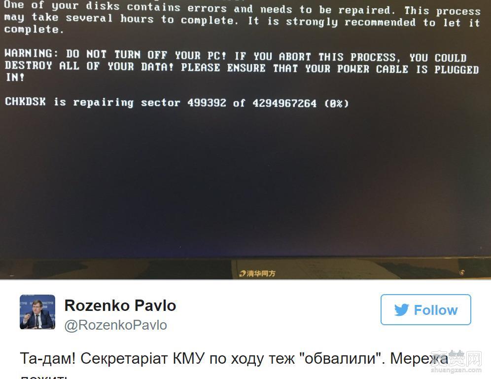 目前乌克兰的情况最严重,大量商业银行、私人公司、电信运营商、政府部门系统、首都基辅鲍里斯波尔国际机场都受到了攻击,乌克兰副总理罗岑科.帕夫洛也中招,他还曝光了政府电脑被攻击后混乱的现场。甚至,乌克兰的atm机也被拖下了水。“此次病毒入侵是‘乌克兰历史上最大的一次’”,乌克兰内政部助理在Facebook上写道。