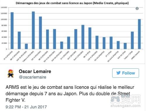 6月16日上市的Nintendo Switch游戏《ARMS(神臂斗士)》,上市第一周就在日本市场取得10万套销量的好成绩,这是最近七年内在日本市场中表现最好的格斗游戏,而且还是一个全新的IP。