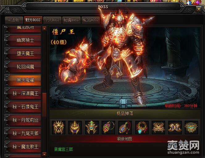 320级BOSS,其掉落下来的装备、材料道具等无疑都会更加稀有,这位新BOSS“黑天鬼藏”,被击杀掉以后便有几率掉落下14转的高阶装备以及其它无比珍稀的材料道具宝物!但是,这位BOSS“黑天鬼藏”被击杀之后的刷新时间足足有360分钟,勇士强者们可要注意了。