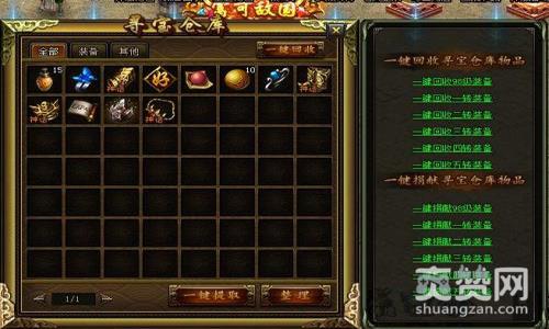 宝藏仓库可以按需显示,附带一键提取和一键回收功能,通过右侧的面板可以按需回收或者捐献宝藏仓库中的装备。