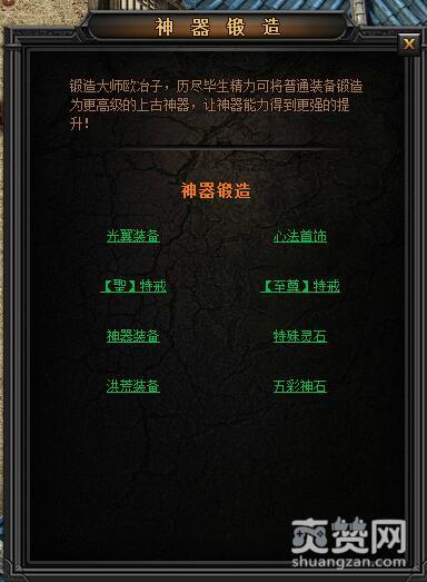 同时神器锻造开放的种类增加到了8种。它们分别是光翼装备、心法首饰、【圣】特戒、【至尊】特戒、神器装备、特殊灵石、洪荒装备以及五彩神石这8种。