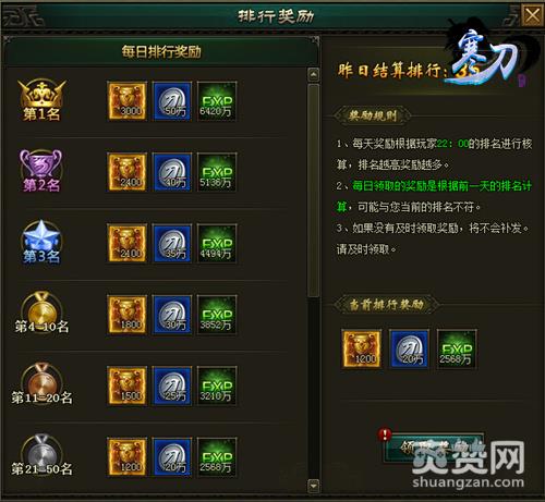 打到了相应的排名,自然有着相应的奖励啦,在9377《寒刀》中,玩家每天都可根据自身当前排名领取排名奖励。除此之外,玩家每进行一场比赛,不论输赢都会有相应的奖励。而通过竞技场获得的荣誉值,则可用于兑换9377《寒刀》荣誉商城内的各种道具,继而提升实力!