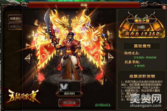 51《五鼠闹东京》是一款武侠网页游戏,游戏延续武侠背景、精美的地图、特色的系统,贤者,方士和侠客三大职业风云际会,谁将傲视群雄,称霸江湖!丰富多样的角色技能和精彩刺激的副本体系,革新性的系统和特色玩法赋予了游戏轻松有趣的氛围。一个崭新的武侠世界,丰富多彩的游戏PK体验,一切尽在51《五鼠闹东京》!战场上最重要的就是战旗,战旗是一方军队的士气集中点,只要战旗不倒,就不退缩,而当战旗插在城楼之上,则就代表了胜利,而现在,51《五鼠闹东京》里也出现了各类战旗,玩家们喜欢哪一款呢,赶紧来看看吧!