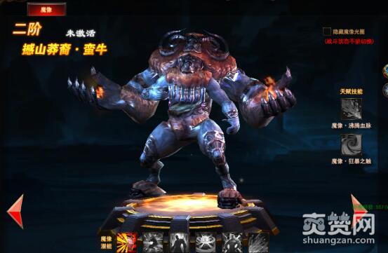 虽然没有激活,但也可以看到更高阶的他们充满魔性的外形。二阶撼山莽裔?蛮牛,比起一阶魔羚看上去更加魁梧强壮,上半身散发着一种幻觉般的魔性,大有征服者的霸气和扰人心智的魅惑之力。