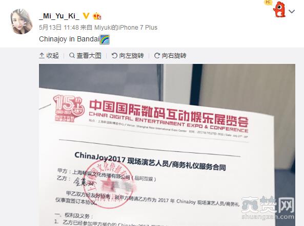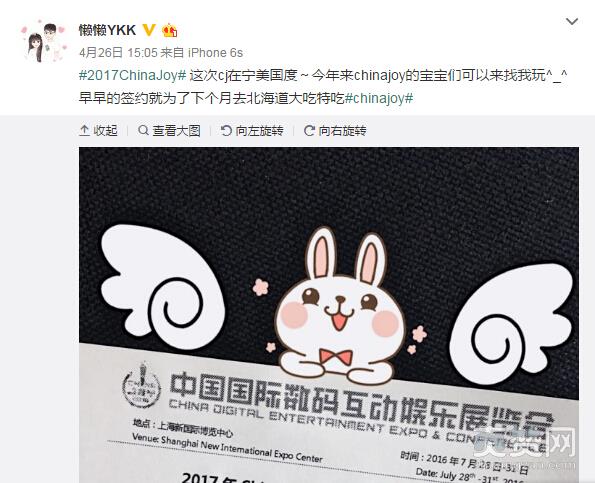除了懒懒YKK,深受大家喜爱的_Mi_Yu_Ki_今年也将参加CJ大会,只是暂时还不知道她将穿什么样的服装,不过根据她个人微博上的内容可以肯定她今年应该会作为品珂互娱的showgirl出现在ChinaJoy展台上。