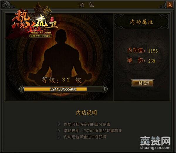 相传内功是锻炼身体内部器官的功法或气功,强健其功能使身体健康的一种活动,相对外功而言,运功疗伤也是内功的一种用法。但在37《热血虎卫》中,内功等级的高低可是在你的防御力中起着关键性的作用,玩家在击杀怪物后,将可以获得升级内功的经验,而且内功值上限越高,能够抵挡伤害也就越多。