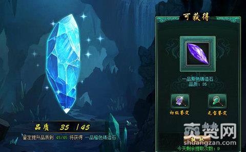 挖矿是个比较经典的系统,这里是铸造石的主要产地之一。铸造石分为三个等级,颜色各异,铸造石的品级决定着锻造装备品质的好坏。在挖矿系统中,玩家可以通过“鉴定”可以提升铸造石品级。