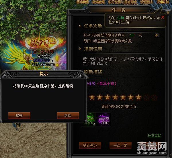 而土豪玩家也可以选择一键十星,只需要消耗50元宝即可快速刷出十级任务。