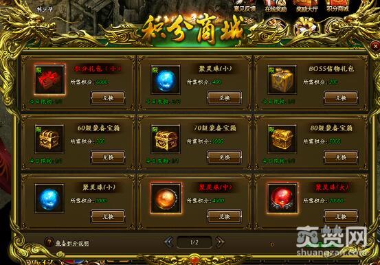 接下来看看装备积分的妙用,积分商城内珍宝才是最大收获,包括积分礼包(小),聚灵珠、BOSS信物礼包、60~80级装备宝箱,以及玉佩碎片等。没想到傲天攻沙加强版积分商城内还为玩家们准备了如此之多的装备,的确有些意外。