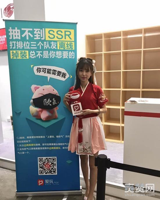 今年的网易展台以大红色为主色调,同时展台还配备了萌萌的showgirl。