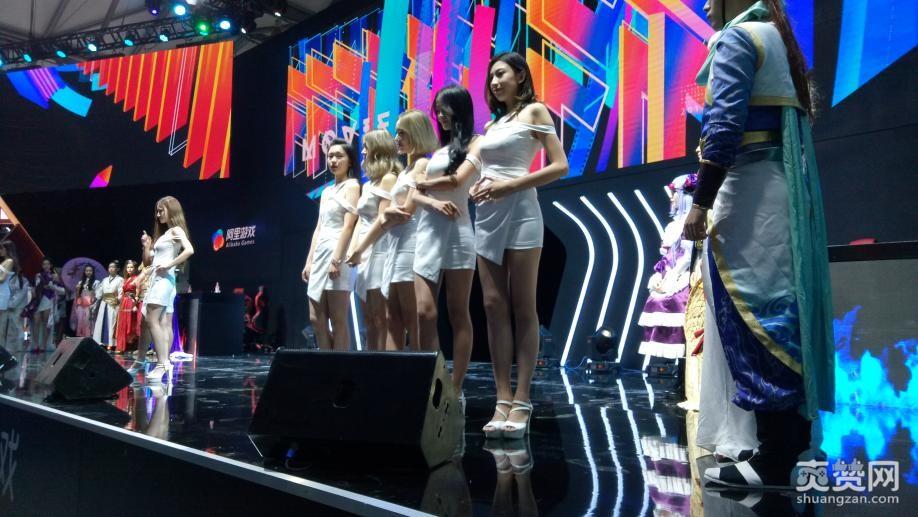 阿里游戏的舞台背景色彩和刚过去的淘宝造物节如出一辙,白衣ShowGirl倒是中规中矩