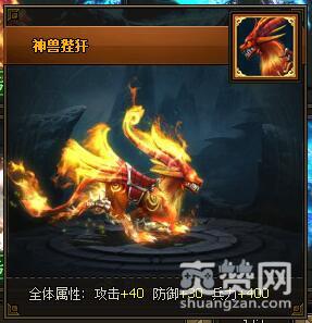 神兽狴犴,全体属性:攻击+40,防御+30,兵力+400。