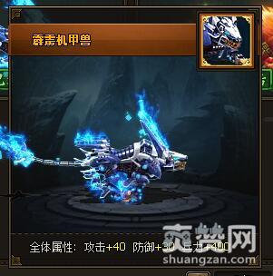 霹雳机甲兽。全体属性:攻击+40,防御+30,兵力+400。