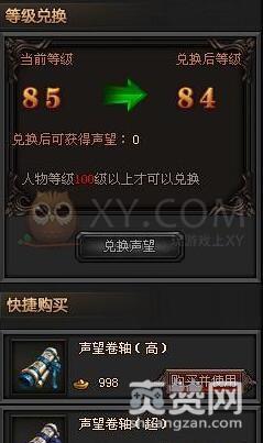问:XY游戏《传奇盛世》等级兑换声望多少级才能开启?