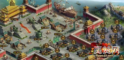 主城系统是一个可以让你获得稳定资源和提升兵种战力的资源系统,也是体现个人与国家强大的一个象征。主城等级越高获得的资源更多,提升的战力也就更多。主城分为7个部分,主城,祭坛,兵营,民居,木场,矿场,农田。