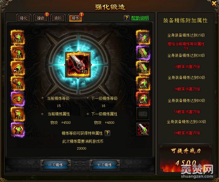 同时,为了增加装备的防护和攻击属性,玩家还可以通过强化、镶嵌、精炼的方式对装备进行属性提升。