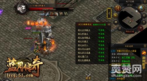 进到51《蓝月传奇》地下宫殿,先了解下Boss的刷新情况。小编主线穿戴2件60级以上装备的任务还没完成,所以进来加油了。其实完成这个任务的方式也蛮多,装备合成也是可以的。既然来了就去会会暗之沃玛教主吧,转角就遇到它。