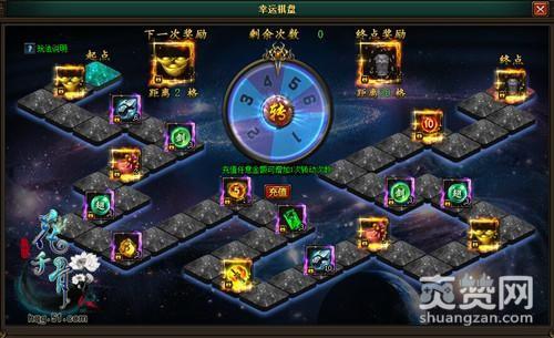 棋盘的奖励是非常不错的,有绑定元宝、强化石、翅膀进阶丹等等,到达终点还有机会获得神兵拴天链,为主人永久增加大量属性,并瞬间提升3000战斗力。