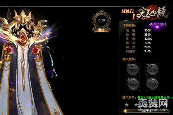 与游戏中的许多其它成长型玩法近似,《完美红颜》中,玩家的披风同样可以逐步提升——游戏中,消耗一定数量的披风进阶石,即可逐步提升披风等阶,并获得属性收益上的进一步提升。而收集青龙、白虎、朱雀、玄武等四大纹饰,则可以为披风赋予额外的特殊属性加成。