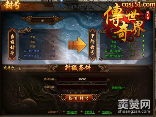 51《传奇世界》封号系统可以提升角色的防御能力,封号需要功勋值来升阶,每提升一阶都有减伤加成。封号等级越高,角色的防御越强,在pk刷怪中也可以游刃有余.【封号规则】1、封号等级提升可以增加人物防御属性。2、功勋值可以通过材料任务、杀戮废土、图鉴商人获得。