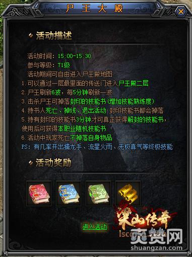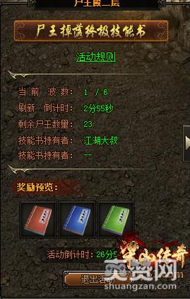 其中尸王殿分为两层,一层刷新10波石墓尸王,石墓尸王掉落少量技能书页。尸王殿二层刷新6波尸王,尸王有高几率掉落封印技能书、大量金条。