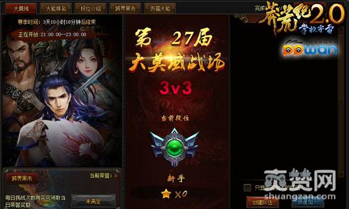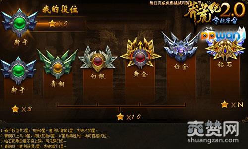 ppwan《莽荒纪》的大莫域战场每天21:00-23:00开启,该战场采用3v3赛制,因此玩家在参加大莫域活动时最好提前组好队伍哦,不然只能在战场上临时组建杂牌队伍了!另外ppwan《莽荒纪》大莫域采用段位积分制:新手、青铜、白银、黄金、白金、钻石六个段位,每个段位又分为10颗星。在游戏中除了钻石级不设总星以外,其他段位满10星后再胜一场就可提高段位哦!