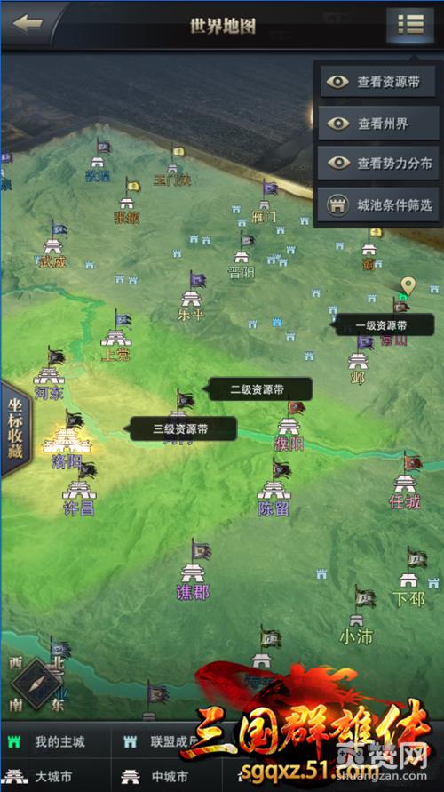 到二级资源带建分城之前,最好是提前跟联盟的人商量好,找一块地方建,到时大家可以聚集在一块。到了二级资源带后,我们主城周边的土地等级会比一级资源带高很多,最高是七级地。但一开始千万不要去挑战七级地,没有四个部队的也不建议打六级地,不然死的伤的兵都亏大了。