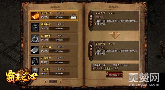 9cb《霸王之心》的游戏中有三种职业可供玩家选择,分别为战士、道士、法师。每种职业都有自己独有的技能系统,与其他游戏不同,《霸王之心》中的技能并不能通过角色升级自动获得,而是需要玩家获得对应技能书来学习技能。技能书的获取有两种途径,分别为尸王殿任务获得以及商城购买。玩家使用技能书后可以增长对应技能的熟练度,技能的熟练度提高到一定数值后可以立即升级该技能。不论是哪个职业,其所有技能的学习都是相互独立的,也因此不同玩家间的技能等级将会存在很大差异。