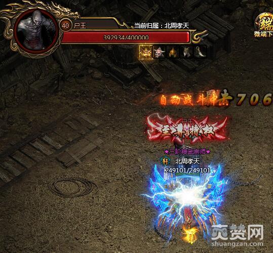 尸王的等级是40级,血量是40万,打的时候会有个归属权,不用管它,发合击就能搞定,因为这毕竟是游戏里最弱的一只BOSS。