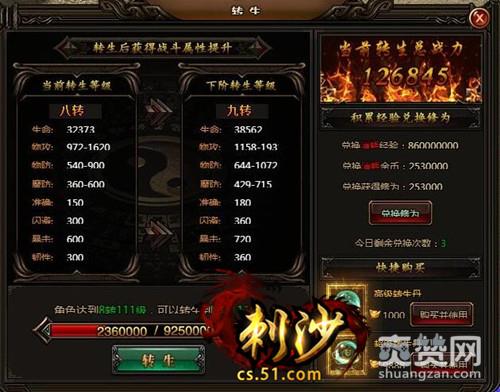 51《刺沙》游戏中通过转生可以为我们带来攻击、物防、魔防、准确、闪避、暴击、韧性等属性的加成,随着转生等级的提升,加成的属性会越来越多。那我们该如何快速转生呢?