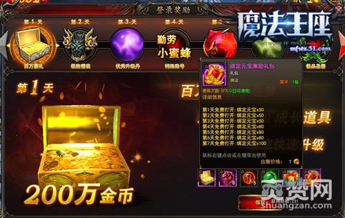 那么如何在51《魔法王座》双十二这天抢得足够的元宝去买买买呢?下面小编就要来变一变魔法,教大家如何以低成本甚至0成本的代价赚的盆满钵满,一起来算一下咱们能够免费首先对于小R玩家来说,在线时间就显得非常的重要,因为在线时间足够长的话,我们是有高几率获得110绑定元宝的,挂机的时候通过签到小手一点,就可以获得20绑定元宝,如果充点小钱升级成为白银VIP3的话,就可以每天80绑元哦,另外每天登陆更可连续七天获得登陆奖励,七天共可累积获得490绑元!这样一算的话,我们已经680绑元入手啦。