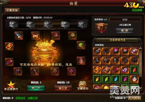 激烈的挑战过名将后来个放松的吧!参与《霸将三国》抽奖活动即可获得超级神器、海量经验和道具。那么该怎么样抽奖呢?使用铜要是可以进行抽奖,每次抽奖可获得1点经验,升级抽奖等级,抽奖每升一击就可领取一个宝箱。抽奖等级越高可抽取的物品越多!最高还可抽取100级金装和9层英雄冢挑战卡!