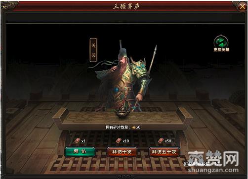 除了招募之外,商店也是获得武将碎片的途径之一,玩家可以使用各种活动积分或金券兑换喜欢的武将,其中有部分武将需要招募后,才会出现在金券商店中。除此之外,宝石和羁绊道具都可以在商店进行兑换。另外在三顾茅庐中,玩家可以使用拜帖邀请里面的武将,使用拜帖可邀请大部分紫将和金将,一张拜帖可兑换一个武将碎片。拜帖可以通过炼狱征战获得,玩家每天都可以免费征战10次。