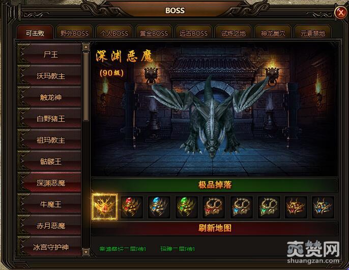 在刷新地图方面:深渊恶魔存在的地图有2个。分别是帝鸿祭坛二层、玛雅二层。两张地图上的BOSS等级属性都相同,没有孰强孰弱之说。