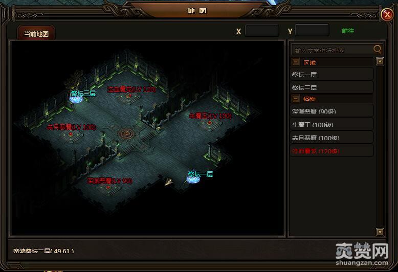 先让我们来看看第一张地图。帝鸿祭坛二层,传送到传送员处后,还要去礼券商城购买一个国家祭坛通行证,有了它才能进入帝鸿祭坛的第一层。