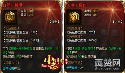 另外,9377小志传奇稀世神纹槽位需要传说神纹全部达到10级才能开启。共4个槽位: