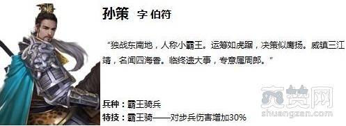 骑兵你见得多了,但是霸王骑兵你听说过吗?“独战东南地,人称小霸王。运筹如虎踞,决策似鹰扬。威镇三江靖,名闻四海香。临终遗大事,专意属周郎。”万万没想到,49you《铁骑冲锋》新登场的霸王骑兵竟是三国中鼎鼎有名的“江东小霸王”孙策!有了他镇守战场,对步兵的伤害将增加30%,霸王在此,谁敢放肆!