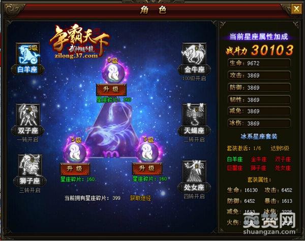 37《武神赵子龙》的玩家达到一定的等级后可以在角色面板开启对应的星座。每个星座有3个星位,每个星位都需要消耗星座碎片进行激活,激活后可以提高主角属性,激活后的星位可以继续升级,每次升级都会增加一定的属性值。当星位升级到一定的等级后,需要激活相应的套装属性才可以继续升级!星座碎片可以通过大汉神殿boss宝箱、玲珑塔击杀小怪获得,还有后续的星脉试炼玩法可以获得!