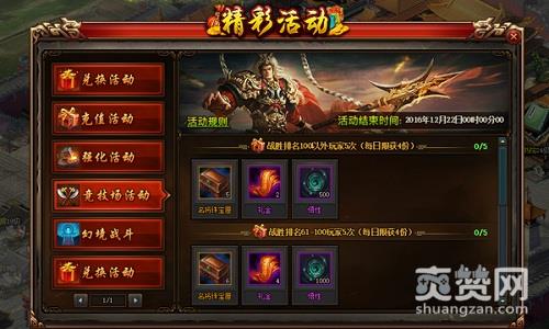 挑战竞技场有惊喜!活动期间玩家每天挑战竞技场还有机会获得额外道具奖励。挑战跟自己实力相当的对手!竞技场上拼的就是实力,如果对自己有足够的信心,完全可以越级挑战!带领你的武将军团来参与极限比拼吧!是强者就要用实力说话!名将礼品匣天天都有送,享受开奖感觉的玩家绝对不能错过!